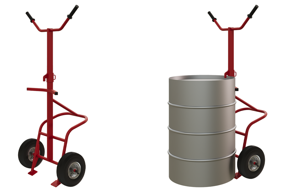 Позволяют не только транспортировать, но и наклонять бочку для слива содержимого. Незаменимы на производствах, где требуется регулярный розлив жидкостей (масла, кислоты, питьевая вода).